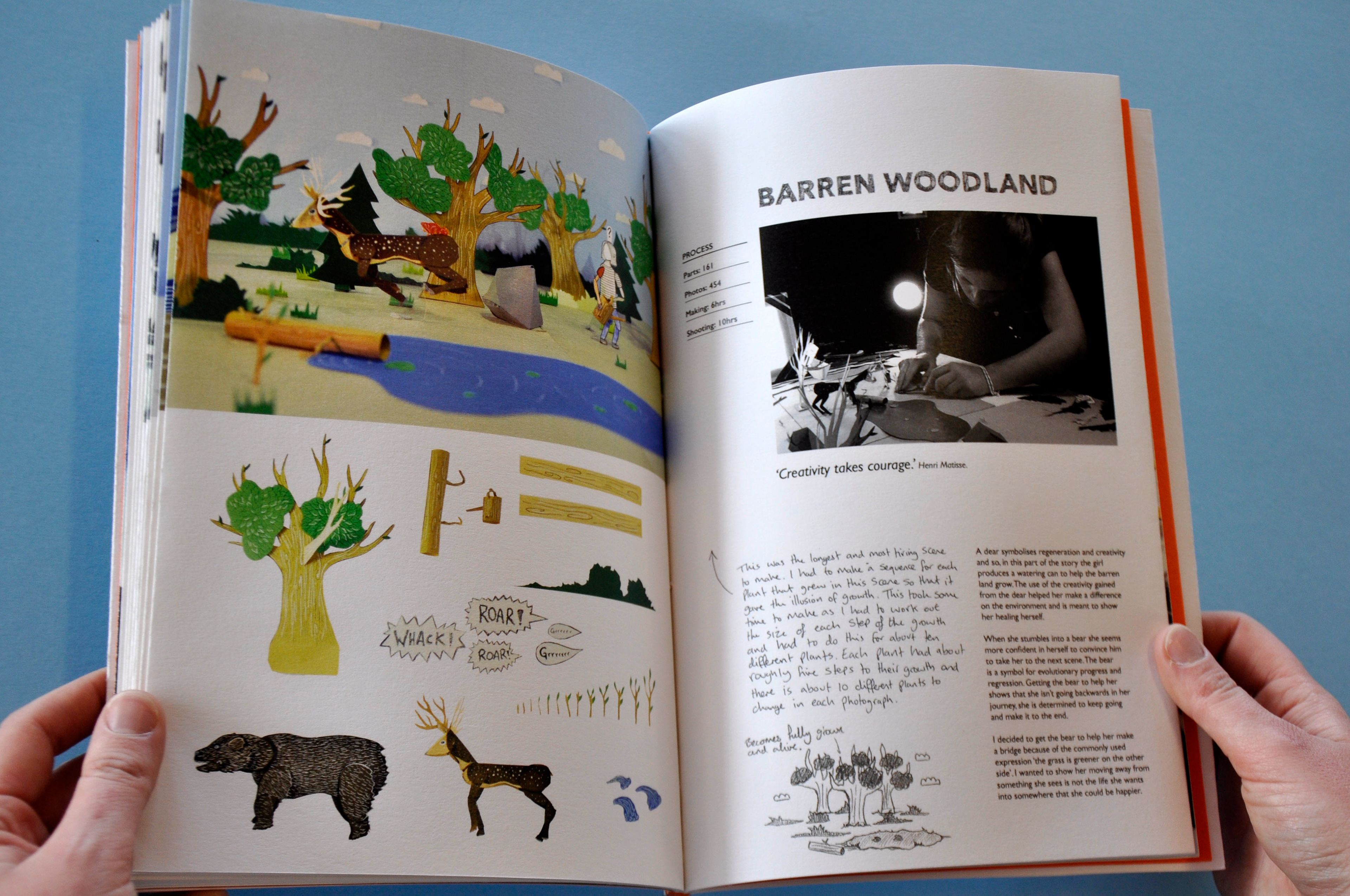 For my major project at Massey University I made a stop motion animation about a character escaping their digital life, to going back to nature and making things with their hands. The video is accompanied by a behind the scenes book telling the story and making process of the stop motion animation.